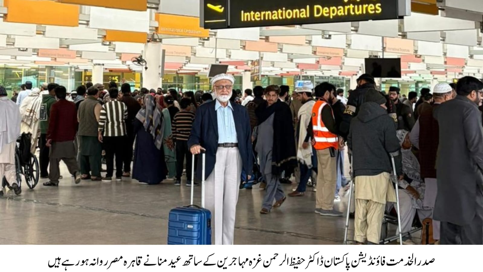 - صدر الخدمت فاؤنڈیشن ڈاکٹر حفیظ الرحمن غزہ مہاجرین کے ساتھ عید منانےمسلسل تیسرے سال قاہرہ، مصر پہنچ گئے