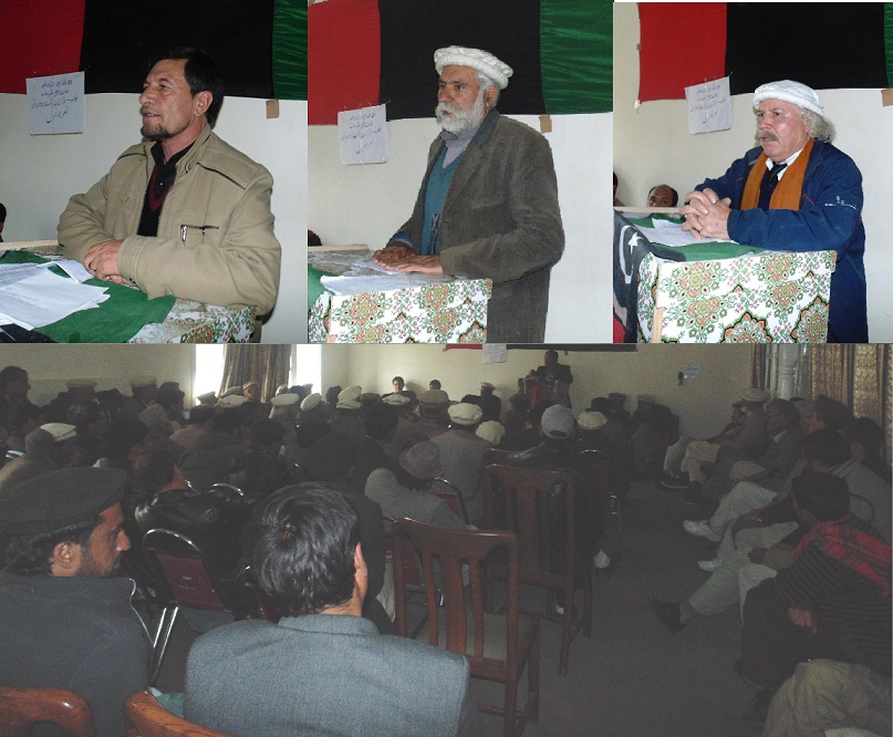 صوبائی قیادت سے اپیل کی کہ مسئلے کو حل کر نے میں اپنا کردار ادا کریں اورکم از کم ایک قیادت سب ڈویژن مستوج کو دے دی جائے بصورت دیگر تمام کارکنان اور پارٹی جیالے الیکشن 2018 کا مکمل بائیکاٹ کر نے کے تیارہیں مقرریں میں حمید جلال، سید برہان شاہ، اقبال حیات،سابق یوسی ناظم امیر اللہ ،میر ایوب ،شمس الرحمن لال، افضل قباد ابولیس رام داسی ، عبد رازاق، نعمان لال، خوش ولی، حکیم، عبد الحسین رحمت سلام لال، مر سلین فخر اعظم دیگر نے خطاب کیے۔ اخر میں یہ پرگرام صدرے محفل شہاب الدیں کی صدراتی خطاب کے ساتھ اختتام پذیر ہوا