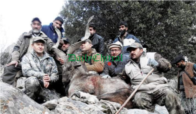 چترال ( نمائندہ  ) کینڈا سے تعلق رکھنے والے شکاری برین ایڈم ہاک نے گہریت کنزروینسی میں 9سالہ مارخور کا ٹرافی شکار کیا ہے۔ جس کے سینگوں کی لمبائی 39انچ تھی۔ وائلڈ لائف کے سب ڈویژنل آفیسر الطاف علی شاہ نےمیڈیا کو بتایا کہ موسم خراب ہونے کی وجہ سے شکاری کو اس شکار کیلئے ایک دن انتظار کرنا پڑا ۔تاہم موسم صاف ہوتے ہی برین ایڈم ہاک نے ٹرافی ہنٹنگ میں کامیاب ہوگیا۔ اور یہ اپنی نوعیت کا پہلا شکار تھا جبکہ اس سے پہلے2013ء میں اسی مقام پر ایک روسی شکاری نے مارخور کا شکار کیا تھا۔ جس کے سینگوں کی لمبائی 38 انچ تھی۔ انھوں نے بتایا کہ ایڈم ہاک نے اس ٹرافی ہنٹنگ کیلئے گیارہ ملین( ایک کروڑ دس لاکھ) پاکستانی روپے وائلڈ لائف ڈیپارٹمنٹ کے پاس جمع کیے تھے۔ انھوں نے مذید بتایا کہ اس ٹرافی شکار کی قیمت کا 80فیصد مقامی آبادی کو دی جاتی ہے۔جو ان کے اجتماعی ترقیاتی کاموں پرکمیونٹی کے منتخب کردہ کمیٹی کے زریعے خرچ کیاجاتا ہے۔ ایس ڈی ایف اوالطاف علی شاہ نے کہا کہ چترال کے مختلف کنزروینسی علاقوں میں کشمیر مارخور کی تعداد میں خاطر خواہ اضافہ ہوا ہے جو ان علاقوں کے کمیونٹی کی تعاون اور نگہداشت کی وجہ سے ممکن ہوگیا ہے۔
