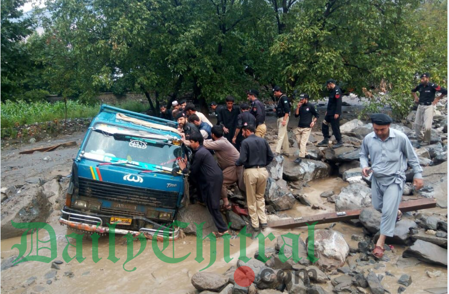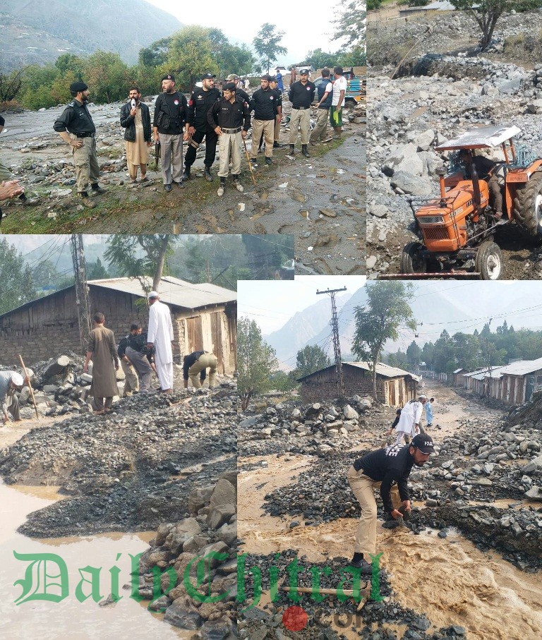 دروش میں سیلاب؛ مقامی پولیس نے امدادی کاموں میں بڑھ چڑھ کر حصہ لیا، مرکزی شاہراہ کھول دی