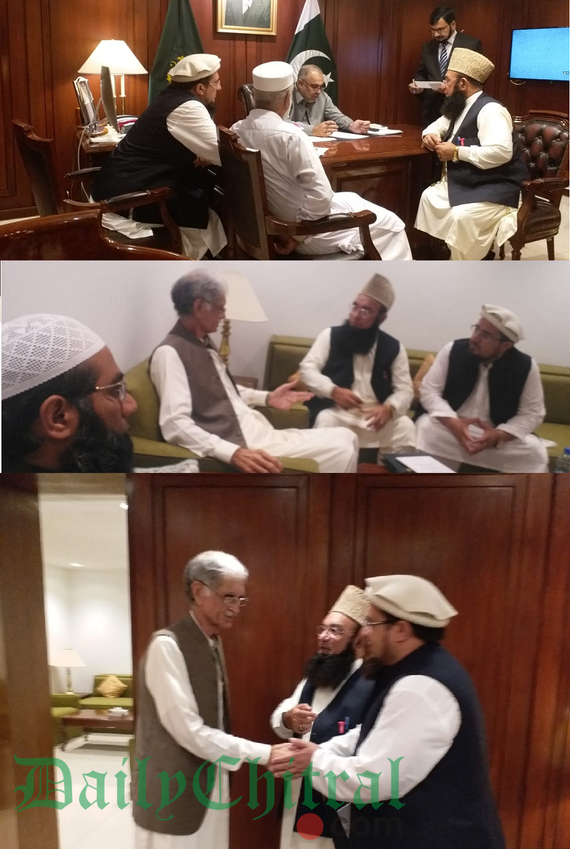 پشاور(نمائندہ  ) متحدہ مجلس عمل چترال کے ممبر قومی اسمبلی مولانا عبد الاکبر چترالی اور ممبرصوبائی اسمبلی مولانا ہدایت الرحمن نے صدر مملکت عارف علوی، وزیر دفاع پرویز خٹک ، اسپیکر قومی اسمبلی اسد قیصر اور ڈپٹی اسپیکر سے اسپیکر چیمبر اسلام آباد میں ملاقات کی۔ملاقات میں چترال کے دو اہم مسائل پر تفصیلی گفتگو ہو ئی تفصیلات کے مطابق متحدہ مجلس عمل چترال کے ممبران اسمبلی نے چترال کے اہم مسائل ایون بمبوریت ، چترال گرم چشمہ ، بونی تا شیندور روڈز اور بالخصوص ارندو روڈ کو ترجیحات میں شامل کرنے پر زور دیا جبکہ ان علاقوں جہاں بجلی کی ٹرانسمشن لائینز موجود نہیں وہاں فوری طور بجلی کی ٹرانسمشن لائنیں بچھانے اور ٹرانسفارمرزکی اپ گریڈیشن اور دیگراہم امور پر بھی تفصیلی گفتگو ہوئی وزیر دفاع پرویز خٹک اور اسپیکر قومی اسمبلی اسد قیصر نے چترال کے جملہ مسائل کے حل کے سلسلہ میں بھرپور تعاون کی یقین دھانی کرائی انہوں نے کہا کہ چترال ایک سیاحتی علاقہ ہے اور سیاحت کو فروغ دینے کیلئے مرکزی حکومت تمام وسائل بروئے کا ر لائے گی اور چترالی قوم کو مایوس نہیں کرینگے۔