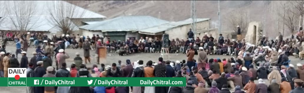 اس اہم مسلے پر اپنی نقطہ نظر سے اور شدید ردِ عمل سے نہ صرف انتظامیہ بلکہ عوامی نمائیدوں کو خبردار کی کہ مسلہ حل نہ ہونے کے صورت میں لانگ مارچ کی جائے گی۔ جلسہ کی صدارت ریٹائرڈ رحمت کریم بیگ جس کا تعلق تریچ سے ہے نے کی۔تلاوت کلام پاک سے جلسہ کا آغاز ہوا۔
