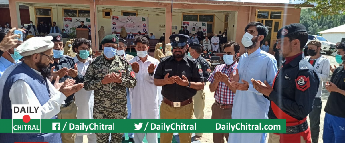 ۶ نےڈی پی اوکے ہمراہ پھول چڑھاۓ ، تقریب سے خطاب میں ڈی سی آپرچترال نے شہدا۶ کے درجات اور انکی قربانیوں پر روشنی ڈالی ۔ اس کے علاوہ ڈی پی او اپرچترال نے بھی اپنے خیالات کا اظہار کیا ، یاد رہے کہ آپرچترال کو ضلع کا درجہ ملنے کے بعد یہ پہلا موقع ہے کہ یوم شہدا۶ کی تقریب منائی گئی اور یادگار شہدا۶ کی سنگ بنیاد رکھی گئی ۔کے پی