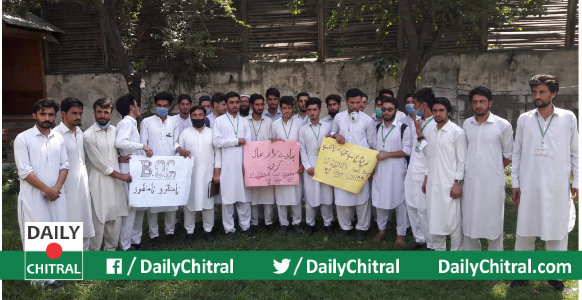 گورنمنٹ ڈگری کالج چترال کے طلباءنے منگل کے روز کالج سے چترال بازار تک احتجاجی ریلی نکالی ۔ اور پریس کلب چترال کے سامنے احتجاجی مظاہرہ