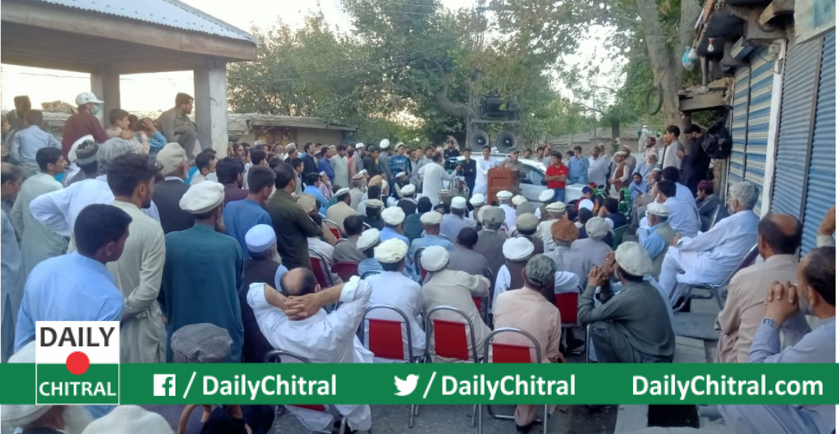 ایون کالاش ویلیز روڈ کی تعمیر میں مسلسل تاخیر کے خلاف مسلم اینڈ کلاش ڈیفنس کونسل کے زیر اہتمام ایک احتجاجی جلسہ ایون جنالی میں منعقد