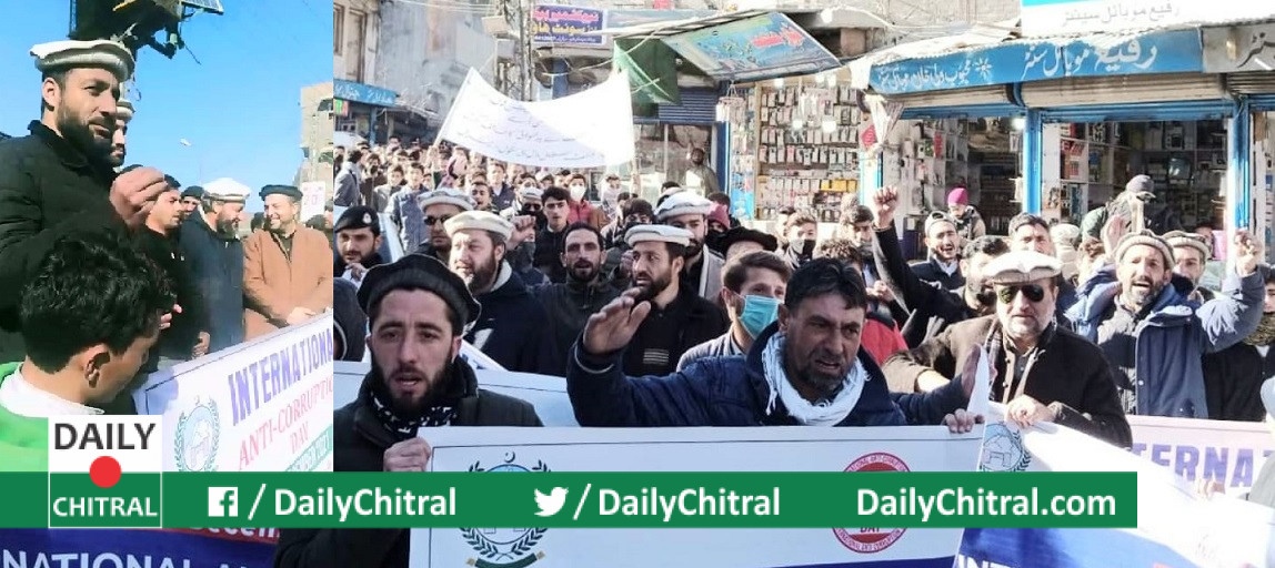 ان خیالات کا اظہار ایڈیشنل اسسٹنٹ کمشنرچترال حفیظ اللہ نے عالمی یوم انسداد بدعنوانی کی مناسبت سے ڈسٹرکٹ انتظامیہ چترال کی سربراہی میں ایجوکیشن ڈیپارٹمنٹ، ٹی ایم اے اور لوکل گورنمنٹ لوئر چترال کی جانب سے منعقدہ مشترکہ آگاہی واک کے انعقاد کے موقع پر اپنے خطاب میں کیا۔ آگاہی واک میں ضلعی انتظامیہ اور لائن ڈیپارٹمنٹس کے آفسران، دیگر ملازمین، سکول کے بچوں اور تجار یونین کےنمائندوں نے شرکت کی۔واک تحصیل کمپلیکس سے شروع ہوکر اتالیق پل، بائی پاس روڈ اور پی آئی اے چوک سے ہوتا ہوا سینیٹینیل ماڈل ہائی سکول پر اختتام پذیر ہوا۔
