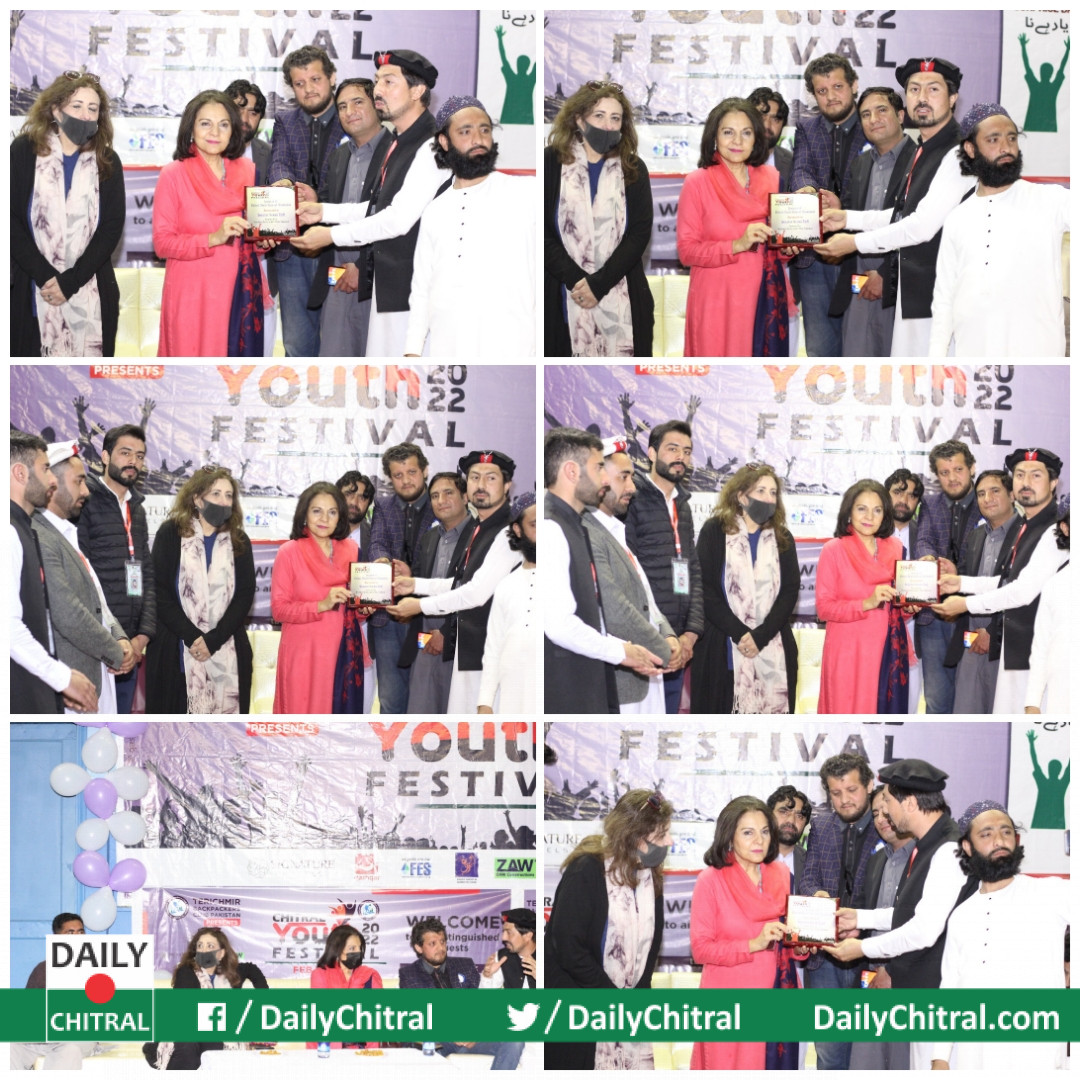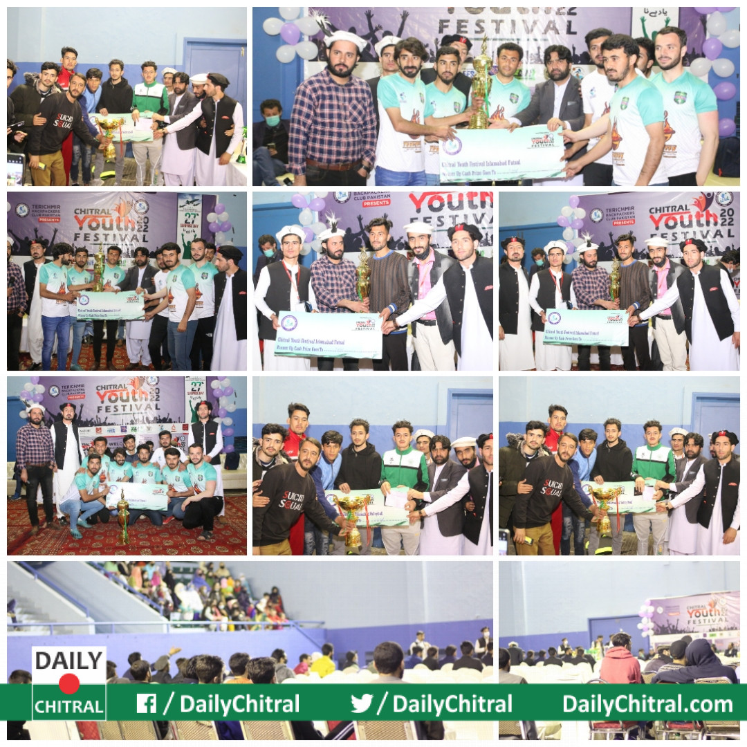 تریچمیر بیک پٸکر کلپ چترال کی جانب سے ایک روزہ یوتھ فیسٹول 2022 جناح سپورٹس کمپلکس اسلام اباد کے ۔۔۔۔ ھال میں نہایت تزک و احتشام کے ساتھ منعقد کیا گیا ۔ ایونٹ میں چترالی مصنوعات و ملبوسات اور مشروبات و ماکولات کی اسٹالز نہایت سلیقے سے سجاۓ گٸے تھے اوٹ اور ان ڈور گیمز مثلا فوٹ سال ، والی بال ، بیٹ مین ٹین ، ٹیبل ٹینس کے علاوہ کوٸز کمپیٹیشن اور میوزیکل شو شامل تھے ۔ اسٹنڈنگ کمیٹی ان کلاٸمیٹ چینج سنیٹر سیما زیدی جو کہ معروف سیاسی شخصیت جہانگیر خان ترین کی بہن ہیں بحیثیت چیف گیسٹ پروگرام میں مدعو تھے انھون نے دیگر مہمانان ، چترالی عماٸدین کے ھمراہ تمام پرگرامات کا جاٸزہ لیا اور اخر میں اپنی تقریر میں اس رنگہ رنگ پروگرام کی انعقاد پر ارگناٸزرز کو خراچ تحسین پیش کی اور چترالی کلچر کو سراہتے ہوۓ چترال کی تفصیلی دورے کی بھی خواہش ظاہر کی۔ چترال بیک پیکر کلپ کے سی ای او عمیر خلیل نے کلپ کی طرف سے انھیں شیلڈ پیش کی۔ تقریب کے اخر میں سابق ممبر تحصیل اسمبلی مستوچ علاوالدین عرفی ، بہار احمد چیف ایگزیکٹیو CAEH ،کرنل رشید، حیات شاہ ڈپٹی ڈائریکٹر ایکسائز ،احترام الحق ،پلاننگ افیسر لوکل کونسل بورڈ الطاف الرحمان رومی اور دیگر مہمانون نے کھلاڑیون میں انعامات تقسیم کی