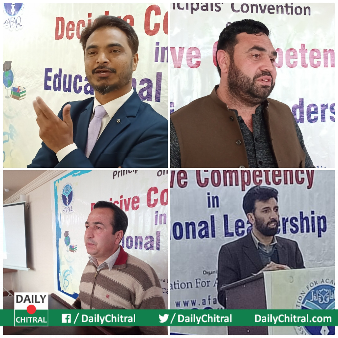 آفاقکے زیر اہتمام چترال کے ایک مقامی ہوٹل میں تعلیمی قیادت میں فیصلہ کن قابلیت اوردیگرموضوع پرایک روزہ پرنسپل کنونشن کاانعقادکیاگیا
