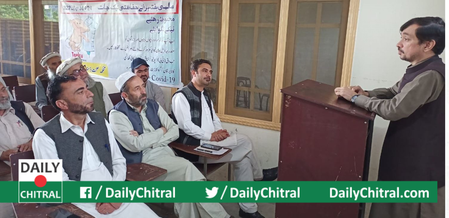 محکمہ صحت لوہرچترال کے زیراہتمام 24 سے 30اپریل تک جاری رہنے والی عالمی ہفتہ حفاظتی ٹیکہ جات کے سلسلے میں آگہی واک منعقد