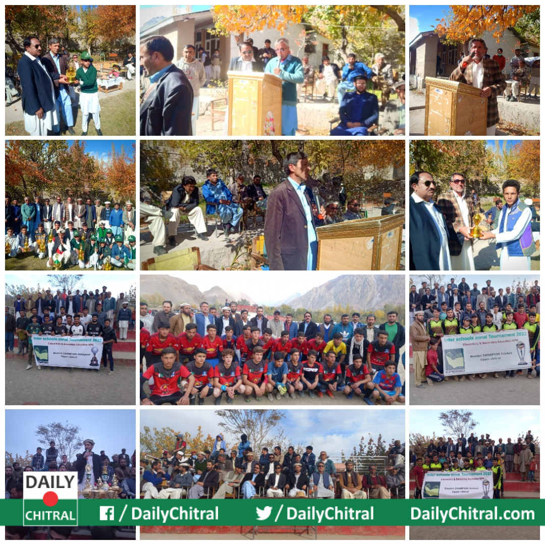 گذشتہ روزگہلی گراوٴنڈ بونی میں کھلیوں کے مقابلوں کا فایئنل میچزفٹبال،ولی بال اور کرکٹ کھیلے گئے۔فٹ بال کافائینل FCPS بونی اور GHSS بروم اویر کے درمیان کھیلاگیا FCPS یہ فائینل دوگول سکور کرکے ڈسٹرکٹ چیمپین بننے کا اعزاز اپنے سر سجالیا۔ولی بال کافایئنل اکسفورڈ پبلک سکول بونی اور GHSS مستوج کے درمیان کھیلا گیا اسے اکسفورڈ سکول جیت کر ڈسٹرکٹ چیمپین بنا۔جبکہ کرکٹ کا فاینل اسلامیہ ماڈل سکول ریشن اور GHSS شاگرام کے مابین کھیلاگیا اسے اسلامیہ ماڈل سکول جیت کر فایئنل کا اعزاز اپنے سر سجالیا