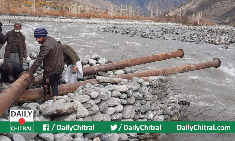 سال 2015 کی تباہ کن سیلاب سے دریا برد وریجون پاٸین ٹو بونی پیدل پل تا حال بحال نہ ہو سکا
