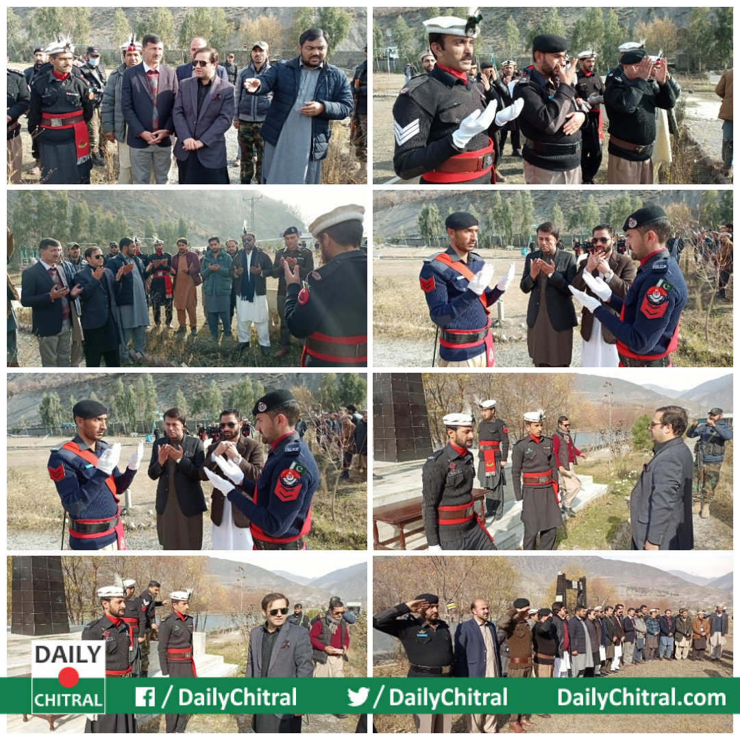 چترال سے اسلام آبادجانے والی پی آئی اے طیارہ کی حویلیاں میں حادثے کے شہداء کی یاد میں شہیداسامہ پارک میں ایک تقریب میں چترال لیویزاورچترال پولیس کی چاق وچوبنددستوں نے شہداء کوسلامی دی