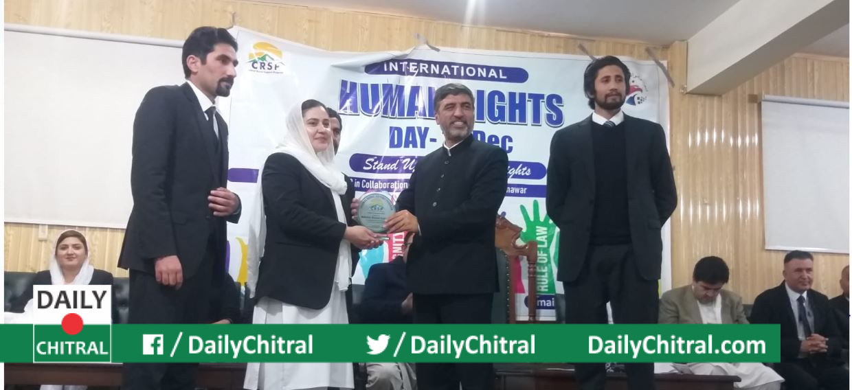 انسانی حقوق کا عالمی دن چترال رورل سپورٹ پروگرام کے زیر سایہ وکلاء برادری کے ساتھ ڈسٹرکٹ کورٹ بار ایسوسی ایشن پشاور کے مین ہال میں منایا گیا۔ جس میں مقررین نے انسانی حقوق کے ساتھ منسلک مسائل پر روشنی ڈالی۔ اس پروگرام میں مہمان خصوصی کی حیثیت سے ایڈوکیٹ سپریم کورٹ نور عالم خان صاحب کو مدعو کیا گیا تھا۔ جبکہ ان کے ساتھ وکلاء برادری سے تعلق رکھنے والے نامور وکیل طارق آفریدی ممبر پاکستان بار کونسل نے شرکت کی۔ وکلاء برادری سے تعلق رکھنے والے وکلاء کی ایک بڑی تعداد نے شرکت کی۔ انسانی حقوق کی پامالی کے حوالے سے کلام کرتے ہوئے مہمان خصوصی نے نظام میں موجود نقائص کی طرف نشاندہی کرتے ہوئے ترجیحی بنیادوں پر ان کو حل کرنے پر زور دیا۔ پروگرام کے اختتام پر Legal aid cell اور Chitral Lawyer Forum کے سربراہ ایڈوکیٹ شاہد علی یفتالی نے انسان اور انسانی حقوق کے باہمی تعلق اور ان کا معاشرے کے اثرات پر سیر حاصل گفتگو کی۔ اس موقعے کی مناسبت سے ایڈوکیٹ شاہد علی یفتالی نے تنظیم کے مختلف موقعوں پر دی جانے والی قانونی معاونت پر بھی گفتگو کی۔ تنظیم کے CEO امیر علی شاہ، سرپرست اعلی ایڈوکیٹ شکیل درانی اور وائس پریذیڈنٹ خورشید عالم نے مہمانان گرامی اور انکے ساتھ دیگر مہمانان کا خصوصی طور پر شکریہ ادا کرتے ہوئے اس بات کا بھی اعادہ کیا کہ مستقبل میں بھی اس حوالے سے جامع حکمت عملی کے تحت اپنی خدمات پیش کریں گے