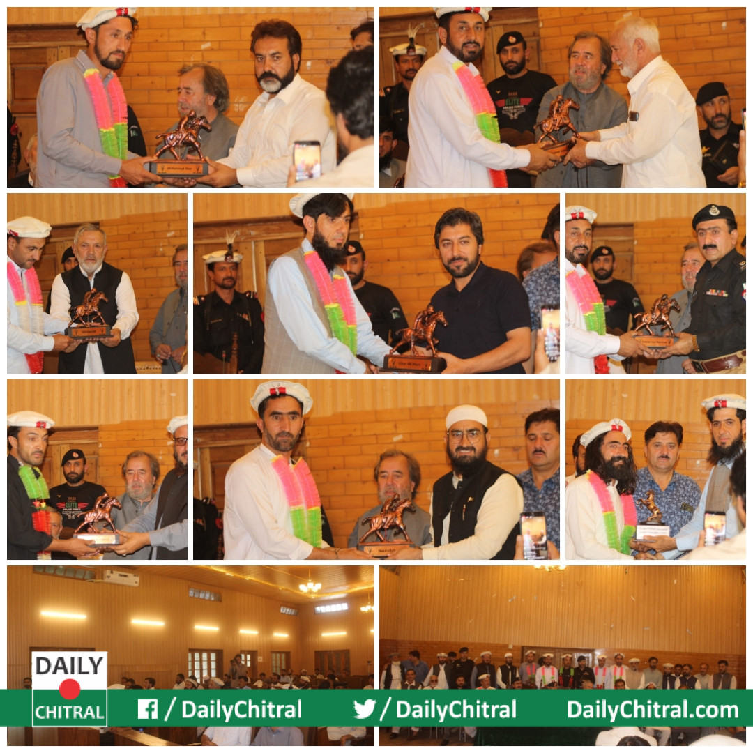 چترال(بشیر حسین آزاد ) ڈسٹرکٹ اسمبلی ہال چترال میں چترال ویٹرن نیٹ ورک اور ڈسٹرکٹ فٹ بال ایسوسی ایشین کی طرف سے چترال فاتح پولو ٹیم جس نے ایک دہائی سے زیادہ جشن شندور میں گلگت بلتستان کے خلاف جیت کرناقابل شکست ریکارڈ قائم کر کےتاریخ رقم کی ہے ۔ فاتح کھلاڑیوں کےاعزاز میں استقبالیہ/ ایوارڈ تقریب منعقد کی ۔ تقریب کے صدر محفل ڈپٹی کمشنر چترال لوئر محمد علی خان جبکہ مہمان خصوصی ڈی پی او چترال لوئرصلاح الدین کنڈی تھے۔ان کے علاوہ شاہی مسجد چترال کے خطیب مولانا خلیق الزمان،خطیب مزار قائد کراچی قاری شمس الدین،شہزادہ سکندر الملک، سابق پولوپلیئر ناصر احمد،عبدالولی خان ایڈوکیٹ ڈسٹرکٹ اسپورٹس افیسر لوئرچترال،ٹاون کے وی سیز ناظمین ، پولو اور فٹ بال پلیئر،تمام مکتبہ فکر اور شعبہ زندگی سے تعلق رکھنے والے شخصیات نے بڑی تعداد میں شرکت کی۔ تقریب سے خطاب کرتے ہوئے مقررین نے شندور کے فاتح پولو ٹیم کے پلیئرز کو شاندار الفاظ میں خراج تحسین اور مبارکباد پیش کی۔ تقریب میں مہمانان نے پولو پلئرز میں ایوارڈ تقسیم کئے۔تقریب کے اختتام پرمتفقہ قرارداد بھی منظور کی گئی جس میں کہا گیا کہ