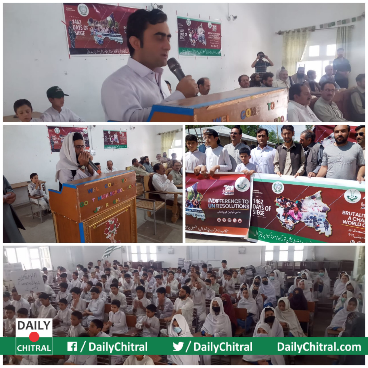 ملک کے دوسرے حصوں کی طرح اج گورنمنٹ ہائی سکول بونی میں ضلعی انتظامیہ اپر چترال اور محکمہ تعلیم کے زیر اہتمام اپنے کشمیری بہین بھائیوں کے ساتھ اظہار یکجہتی کے طور پر یوم استحصال کشمیر منایا گیا۔اج کے پروگرام کے مہمان خصوصی شاہ عدنان اسسٹنٹ کمشنر مستوج تھے جبکہ صدارت کا منصب مقدس خان ڈپٹی ڈسٹرکٹ ایجوکیشن افیسر میل اپر چترال سنبھالا تھا۔ان کے علاوہ محکمہ ایجوکیشن کے افیسران، سکول ہذا کے پرنسپل، ٹیچرز اور سٹوڈنٹس نے پروگرام میں بھرپور شرکت کی۔تلاوت قرآن پاک کےساتھ حمد باری تعالیٰ اور نعت شریف پیش کئے گئے۔مقریرین نے اج کے دن کی مناسبت سے تقاریر پیش کئے۔مہمان خصوصی اسسٹنٹ کمشنر نے اپنے خطاب میں کشمیر میں ہندو سامراج کے نہتے کشمیریوں کے ساتھ جبرو سختی اور تعصبانہ رویے کی بھرپور مخالفت کی اور اقوام متحدہ سے بھارتی جارحیت کا فوری نوٹس لینے کا مطالبہ کیا اور کشمیریوں مسلمانوں کی سفارتی ، اخلاقی اور سیاسی حمایت کا بھرپور اعادہ کیا ۔اخر میں کشمیروں کی آزادی اور ہندو سامراج کے مظالم سے نجات کے لئے دعا کی گئی۔پروگرام کے بعد شراکاء نے گورنمنٹ ہائی سکول بونی سے بونی چوک تک ریلی نکالے اور بھارتی جارحیت اور مظالم کے خلاف نعرے لگائے۔