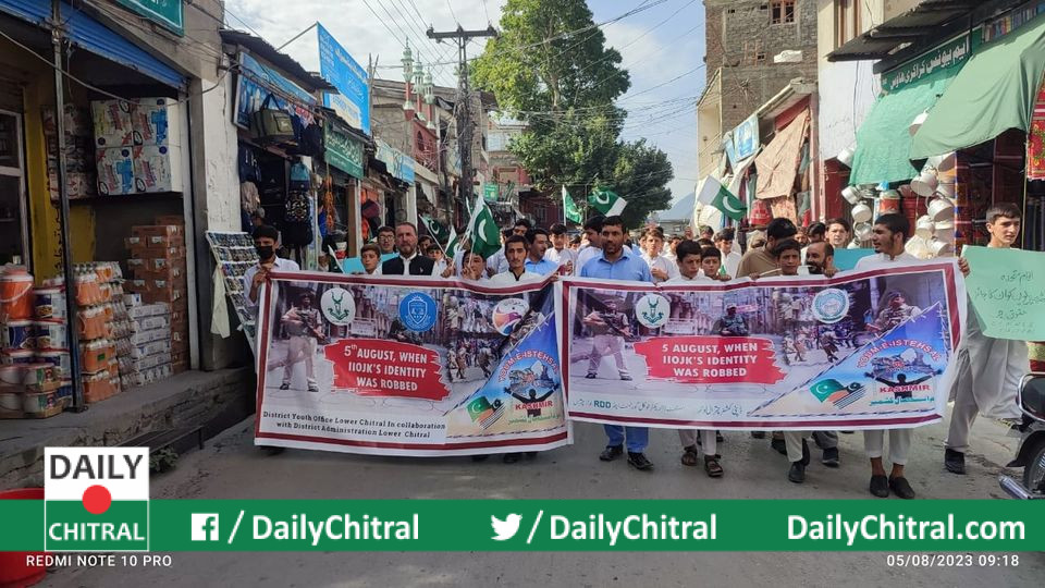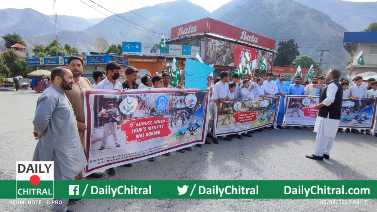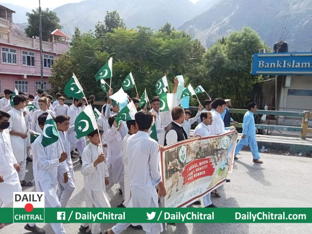 یوتھ افیس لوئرچترال کی مالی معاونت سے سینٹینل ہائی سکول چترال میں یوم استحصال کشمیرمنایاگیااورآگاہی واک کااہتمام کیاگیا