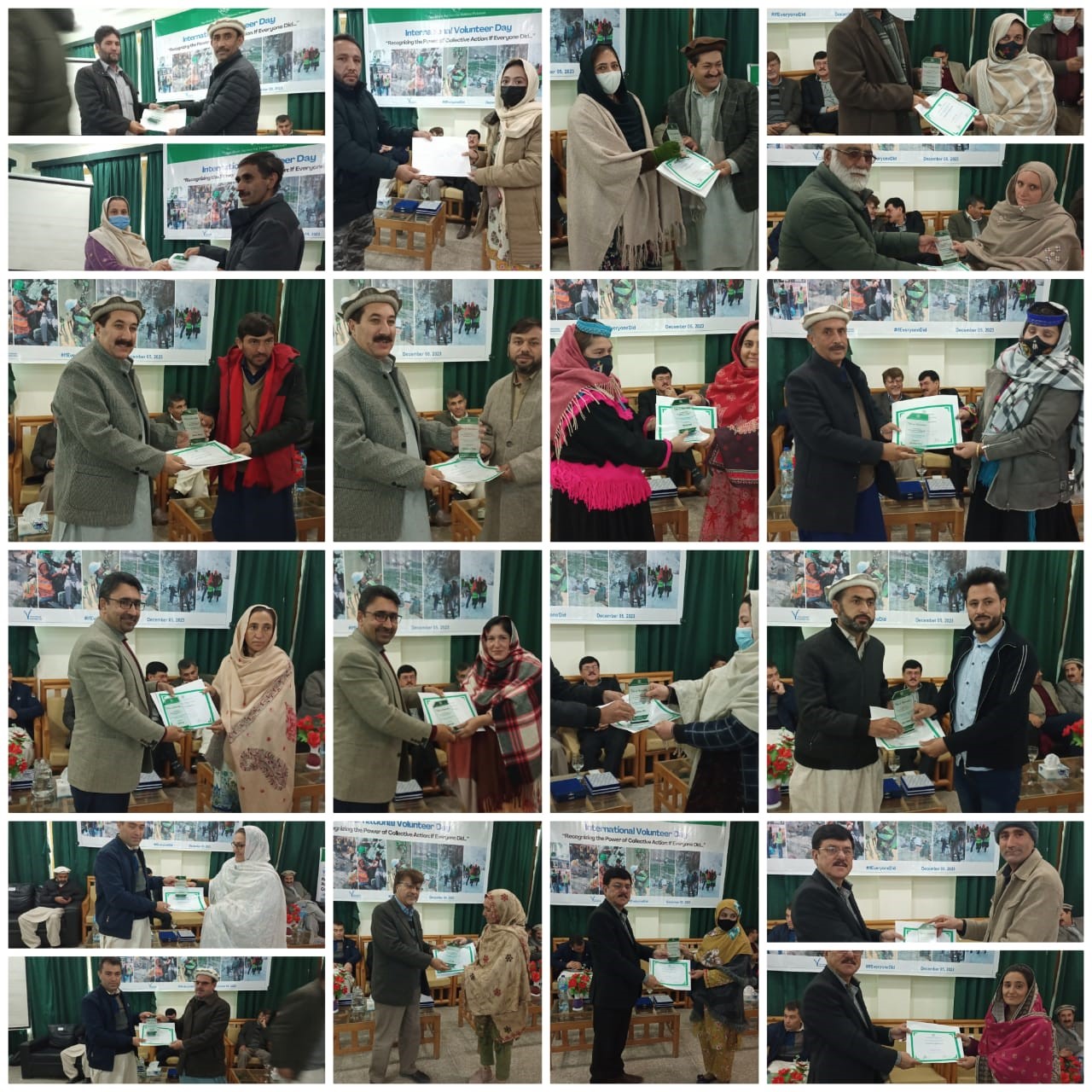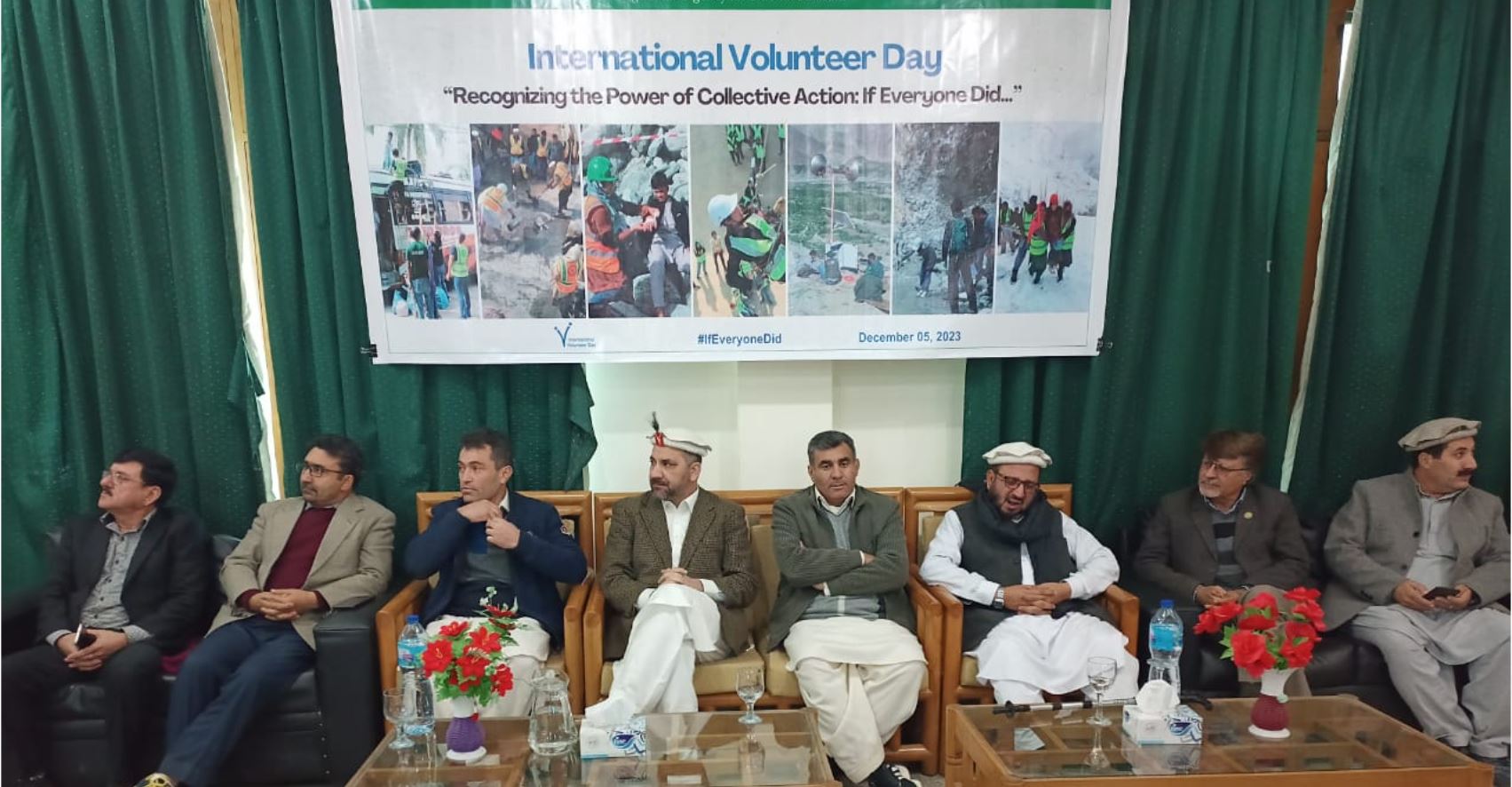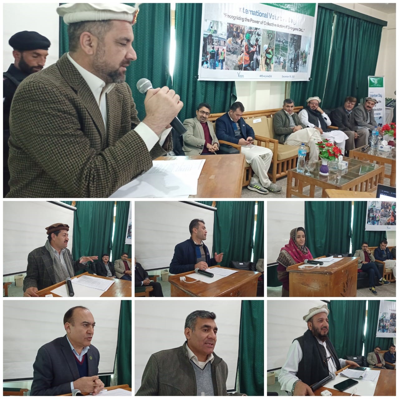 اس موقع پر پریذیڈنٹ ریجنل کونسل اپرچترال امیتازعالم، پریذیڈنٹ ریجنل کونسل لوئرچترال ظفرالدین ،سینئراسکالرعلی اکبرقاضی ،سینئرپروگرام منیجرمحمدولی،محمدافضل ، منیجرایمرجنسی مینجمنٹ ڈیپارمنٹ (اکاہ )جاویداحمد ،ٹریننگ آفیسرعیسیٰ خان اوردوسروں نے خطاب کرتے ہوئے کہاکہ رضاکار زندگی کے تمام شعبوں میں بے لوث خدمات فراہم کرتے ہیں لیکن جب تک قوم ان کا مکمل ساتھ نہیں دے گی ان کا مشن پورا نہیں ہو سکتا۔ انٹر نیشنل ولنٹیرز ڈے کمیونٹی رضاکاروں کی شمولیت کا ایک عالمی دن ہے، بین الا قوامی ولنٹیرزڈے ایک موقع فراہم کرتا ہے کہ ولنٹیرز کی رضاکارنہ خدمات کو تسلیم کیا جائے اور دوسروں کو اس نیک مقصد میں شامل ہونے کی ترغیب دینے کا موقع فراہم کرتا ہے۔