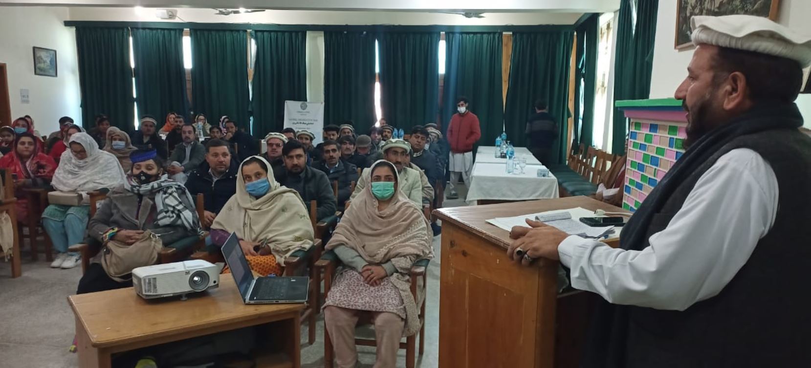 پروگرام سے خطاب کرتے ہوئے ریجنل پروگرام منیجرآغاخان ایجنسی فارہبیٹاٹ چترال ڈاکٹرنذیراحمد نے کہاکہ(آکاہ) چترال جیسے پسماندہ اورقدرتی آفات سے متاثرہ علاقوں میں بسنے والے کوگوں کی معیار زندگی کو بہتر بنانے اور ماحولیاتی تبدیلی سے پیدا ہونے وا لے حالات کا مقابلہ بہتر طور پر کرنے کے لیے آگاہی کے ساتھ ساتھ ر مختلف بحالی اورترقیاتی کاموں میں حکومت کے شانہ بشانہ کام کررہے ہیں۔آغا خان ایجنسی فار ہیبٹاٹ چترال کے رضا کار مخلوق خدا کی خدمت سے سرشار اور اپنی جانوں کی پرواہ کئے بغیر آزمائش کی گھڑی میں انسانیت کی خدمت کا دینی فریضہ انجام دیتے ہیں جوقابل ستائش ہیں۔