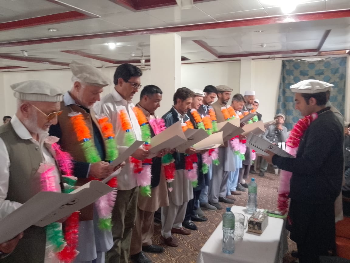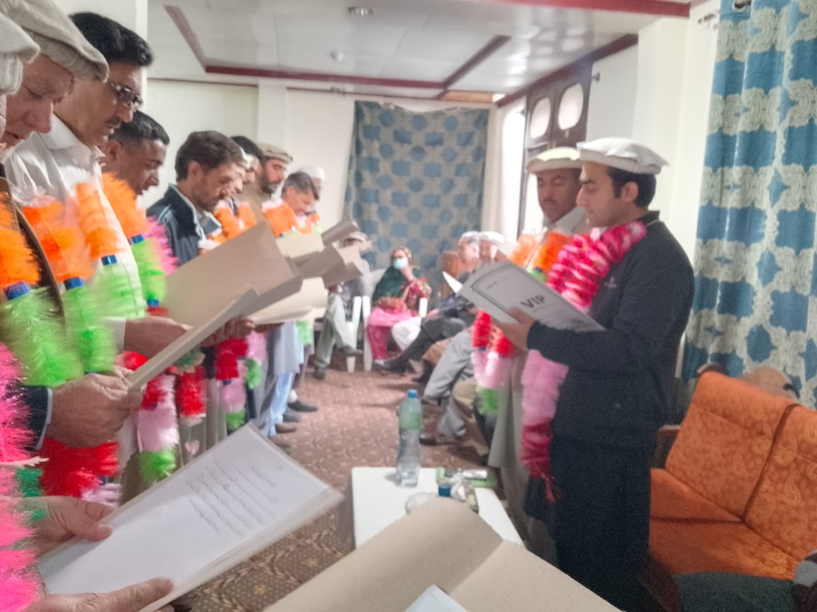 تجار یونین بازار بونی اپر چترال کی حلف برداری کی تقریب ، سیاسی و سماجی شخصیات کی شرکت۔اسسٹنٹ کمشنر شاہ عدنان نے حلف لیا۔