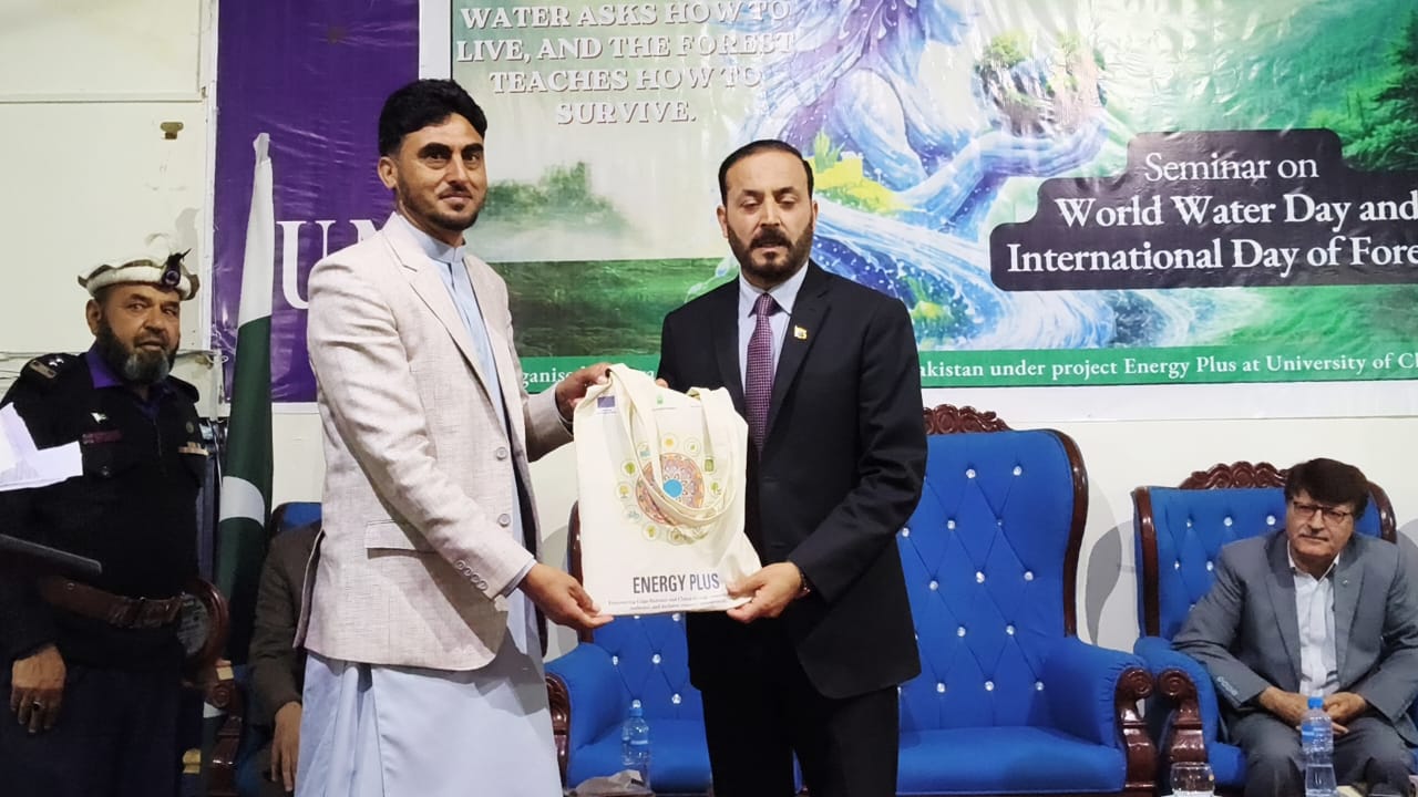 چترال(ڈیلی چترال نیوز)آغا خان ایجنسی فار ہیبیٹاٹ پاکستان (AKAHP) چترال اور یونیورسٹی آف چترال کے اشتراک سے یورپی یونین اور پیٹرپ (PATRIP Foundation) کی مالی معاونت سے یونیورسٹی آف چترال میں ورلڈ واٹر ڈے اور انٹرنیشنل ڈے آف فارسٹ کے موضوع پر ایک روزہ سیمینار کا انعقاد کیا گیا۔ تقریب کے مہمانِ خصوصی یونیورسٹی آف چترال کے وائس چانسلر پروفیسر ڈاکٹر حاضر اللہ تھے۔ سیمینار میں آکاہ چترال کے مینجمنٹ، یونیورسٹی کے پروفیسرز، طلبہ و طالبات، لائن ڈیپارٹمنٹ کے نمائندگان اور مختلف شعبہ ہائے زندگی سے تعلق رکھنے والے افراد نے کثیر تعداد میں شرکت کی۔