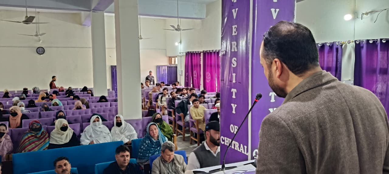 وائس چانسلر پروفیسر ڈاکٹر حاضر اللہ نے "پانی جنگلات اور کاربن مارکٹس،بلیو اور گرین اکانمی” پر روشی ڈالی اور آپ نے کہا کہ یہ دن منانے کا مقصد چترال کی کمیونٹی کو مستقبل میں درپیش موسمیاتی تبدیلی کی وجہ سے رونماء ہونے والے مسائل، پانی اور جنگلات کی اہمیت، پائیدار مستقبل اور نوجوانوں میں ان مسائل کے حوالے سے شعور اجاگر کرنا ہے۔ انہوں نے کہا کہ آج کے دور میں کوئی بھی انسان یا جاندار ایسا نہیں جو جنگلات اور پانی کی کی کمی اور بےجا استعمال سے متاثر نہ ہو۔ دنیا بھر میں ہر سال تقریباً چار ملین افراد پانی کی قلت کا شکار ہوتے ہیں جبکہ سالانہ 15 بلین درخت مختلف ضروریات کے لیے کاٹے جاتے ہیں، جو ماحول کے لیے خطرناک ہے۔ انہوں نے بلیو اور گرین اکانمی کی ملکی معیشت میں اہم کردار کے حوالے بھی آگاہی دی۔