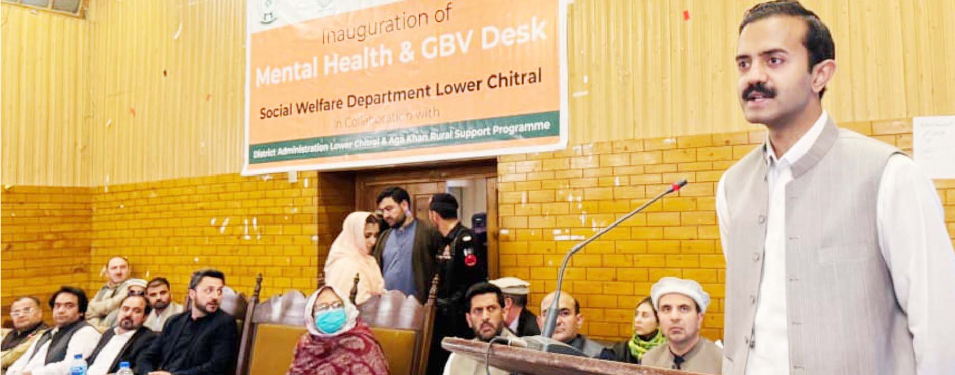چترال (ڈیلی چترال نیوز) ضلعی انتظامیہ لوئر چترال اور آغا خان رورل سپورٹ پروگرام (AKRSP) کے خواتین کی سماجی و معاشی خودمختاری پراجیکٹ کی مالی معاونت سے، سوشل ویلفیئر ڈیپارٹمنٹ کے زیر نگرانی لوئر چترال میں جینڈر بیسڈ وائلنس (GBV) کی روک تھام اور بروقت رپورٹنگ کے لیے “مینٹل ہیلتھ اینڈ جی بی وی ڈیسک” قائم کر دیا گیا۔مینٹل ہیلتھ اینڈ جی بی وی ڈیسک کا افتتاح ڈپٹی کمشنر لوئر چترال راؤ ہاشم اعظم نے چترال پریس کلب کے لان میں پودا لگا کر اور فیتہ کاٹ کر کیا۔ اس موقع پر ایک پروقار تقریب بھی منعقد ہوئی، جس میں مختلف مکاتبِ فکر سے تعلق رکھنے والے افراد نے شرکت کی۔