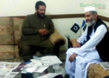 اسلام آباد (پ۔ر) ضلع ناظم چترال اور جماعت اسلامی کے رہنما مغفرت شاہ نے اتوار کے روز پارلیمنٹ لاجز اسلام آباد میں جماعت اسلامی کے امیر سینیٹر سراج الحق سے ملاقات کی۔ اس موقع پر چترال سے متعلق مسائل پر تفصیلی گفتگو ہوئی جس میں اقتصادی راہداری کے متبادل روٹ کو چترال سے گزارنے سمیت تاجکستان روڈ اور لواری ٹنل کی تکمیل کے بعد چترال میں مختلف حوالوں سے بننے والی مناظر اورا ن کے مضمرات شامل تھے۔ اس موقع پر ضلع ناظم نے امیر جماعت کو چترال میں گزشتہ سال تاریخ کی بدترین سیلاب اور اس کے نتیجے میں انفراسٹرکچروں کی تباہ وبربادی اور اب تک حکومت کی طرف سے اس پر عدم توجہی اور مقامی لوگوں کی حالت زار سے بھی اگاہ کیا۔