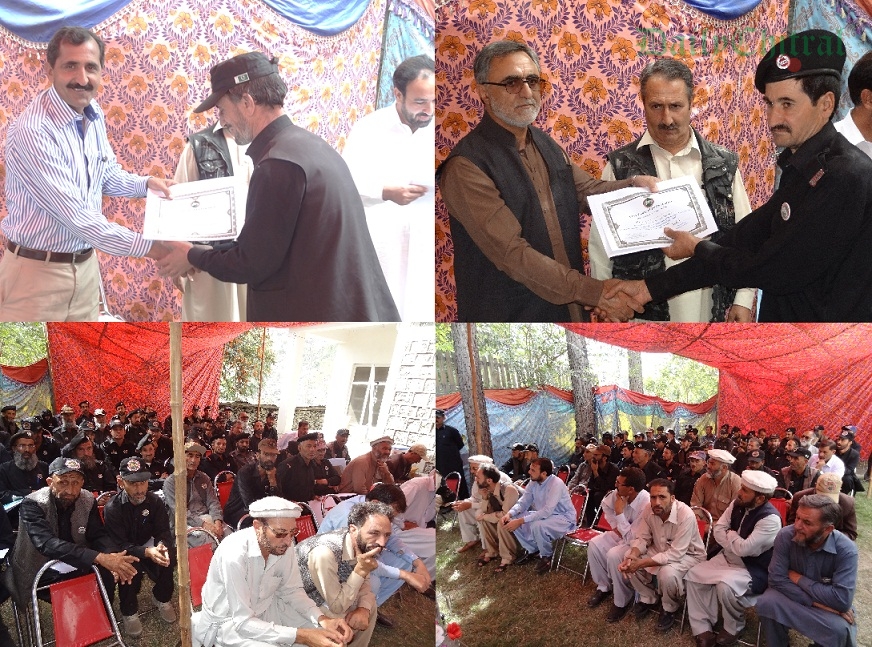 کے دفتر میں تقسیم اسناد کی ایک تقریب بھی منعقدہوئی جس میں ضلع ناظم حاجی مغفرت شاہ مہمان خصوصی تھے۔ تقریب سے خطاب کرتے ہوئے ڈی ایف او چترال ڈویژن امتیاز حسین لال نے کہا کہ چترال واحد خطہ ہے جہاں قومی جانور مارخور، قومی پھول چنبیلی ، قومی پرندہ چکور اور قومی درخت دیار یہاں پائے جاتے ہیں۔ انہوں نے کہا کہ اگر جنگلی حیات کو فروغ دیا جائے تو ماحولیاتی سیاحت کو خود بخود ترقی ملے گی اور دنیا بھر سے سیاح یہاں کا رخ کریں گے جس سے یقینی طور