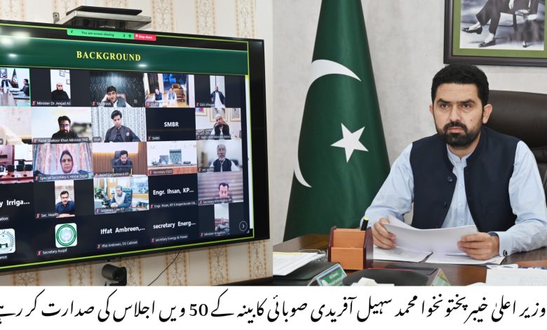 صوبائی کابینہ کا 50واں اجلاس وزیراعلیٰ خیبر پختونخوا محمد سہیل آفریدی کی زر صدارت جمعہ کے روز بذریعہ ویڈیو لنک…