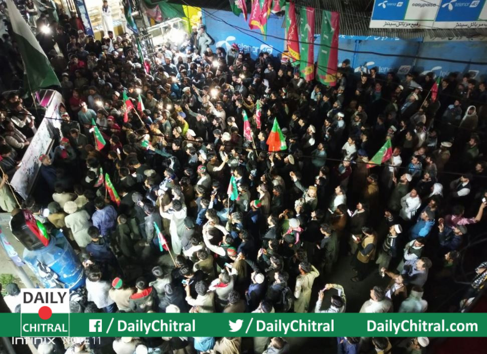 قائد پی ٹی آئی عمران خان کی کال پر چترال شہر میں اتوار کی شب نماز تراویح کے بعد احتجاجی مظاہرہ