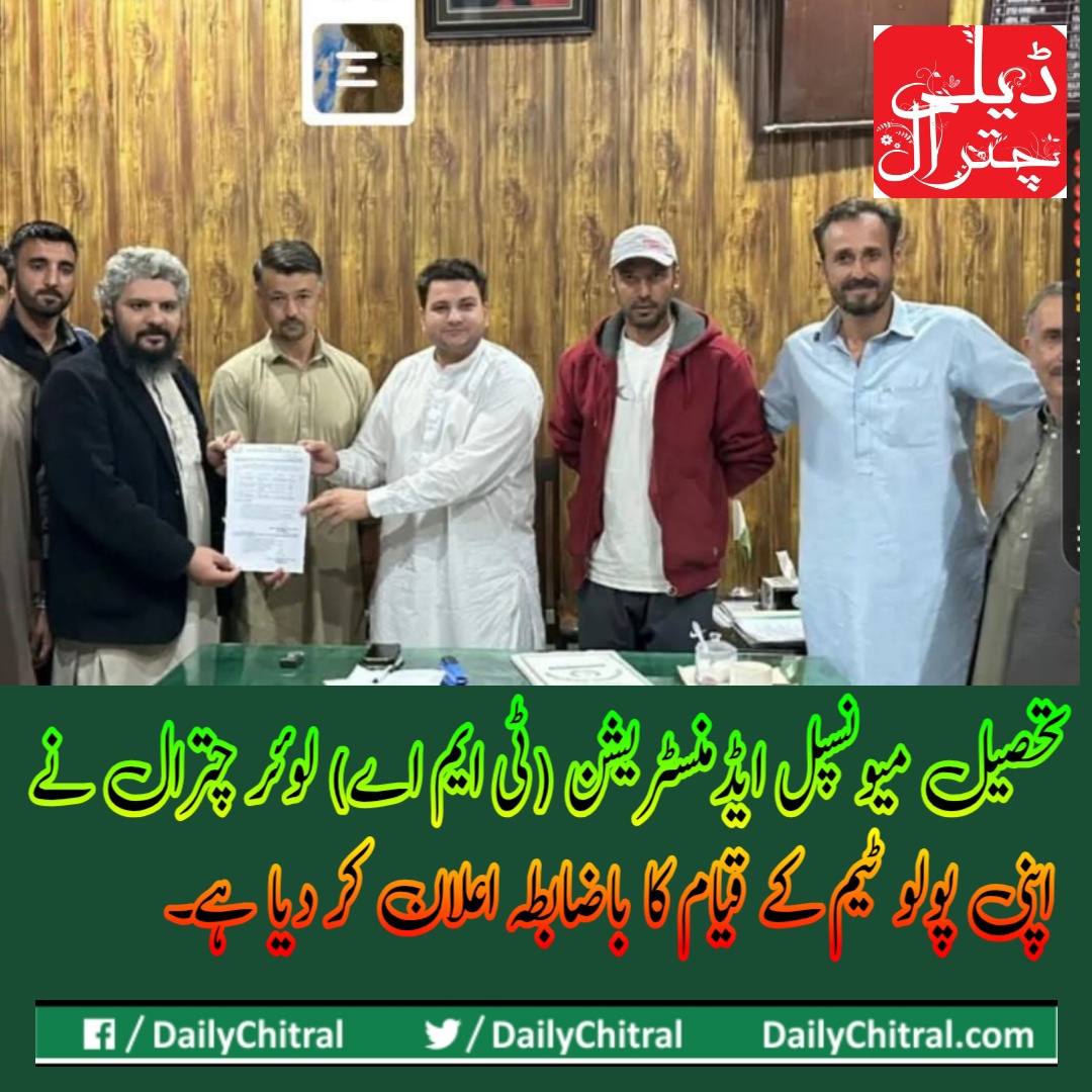 تحصیل میونسپل ایڈمنسٹریشن (ٹی ایم اے) لوئر چترال نے اپنی پولو ٹیم کے قیام کا باضابطہ اعلان کر دیا