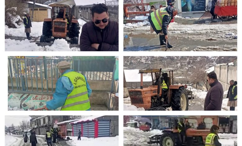 ٹی ایم اے لوئر چترال کا برف باری کے بعد ہنگامی آپریشن، شہر کی اہم شاہراہیں اور فٹ پاتھ بحال